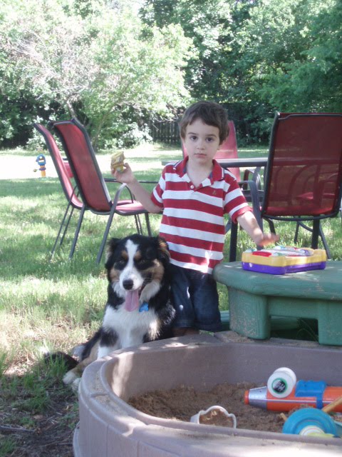 2. He has to be right next to Elijah at all times. If the kids and I pass by the back yard to check the mail or go for a walk Jack will find a way out of the yard to get to us or whines until we get back in sight.